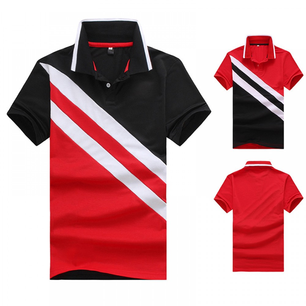 New Men's Wind Diagonal Stripes Stitching Lapel Short-Sleeved Large Size T-Shirt