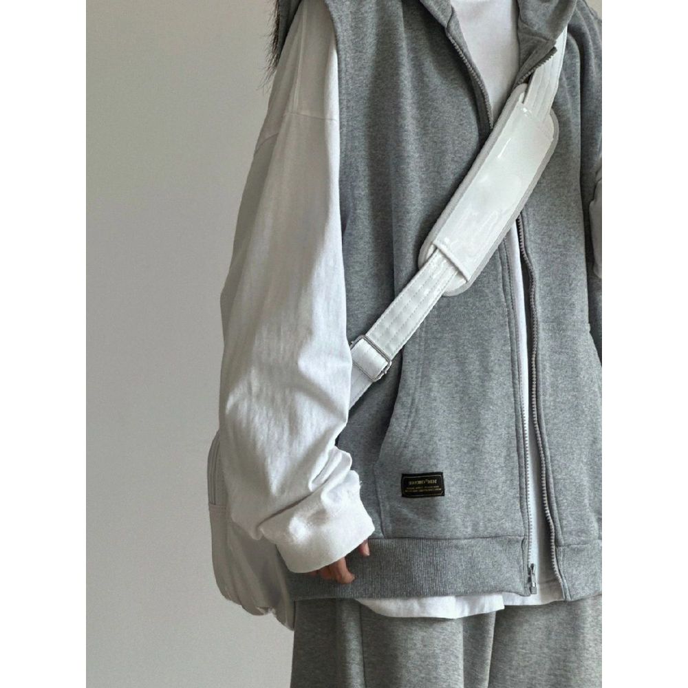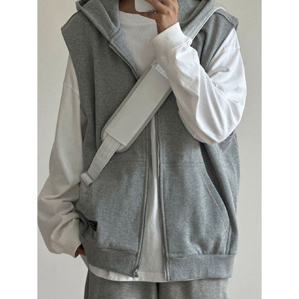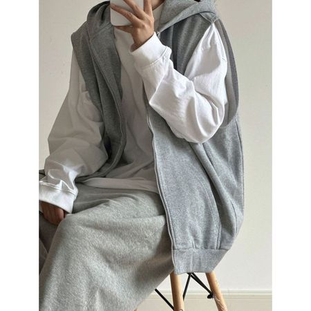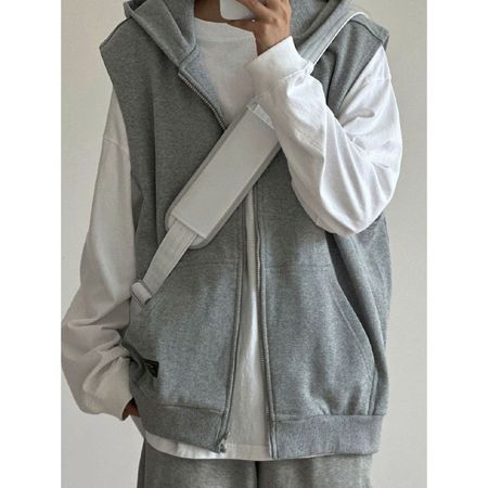 Retro Grey Sleeveless Hooded Zipper Vest Women's Top